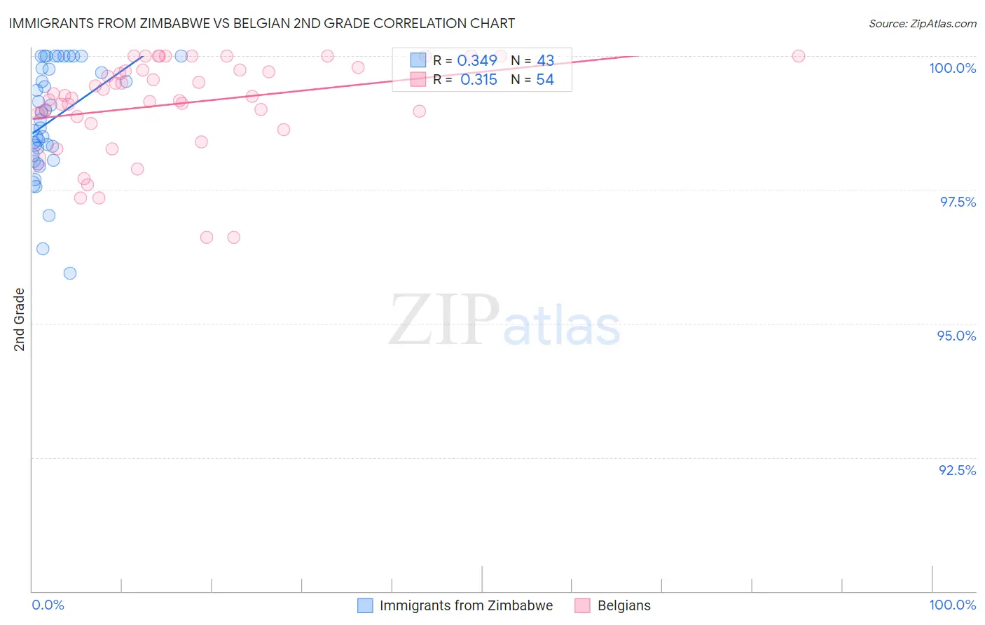 Immigrants from Zimbabwe vs Belgian 2nd Grade Correlation Chart