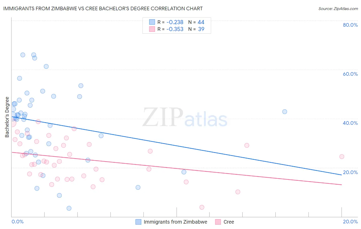 Immigrants from Zimbabwe vs Cree Bachelor's Degree Correlation Chart