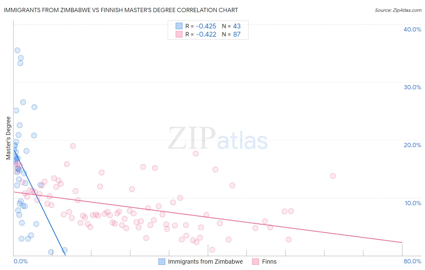 Immigrants from Zimbabwe vs Finnish Master's Degree Correlation Chart