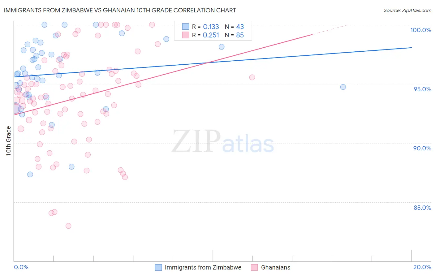 Immigrants from Zimbabwe vs Ghanaian 10th Grade Correlation Chart