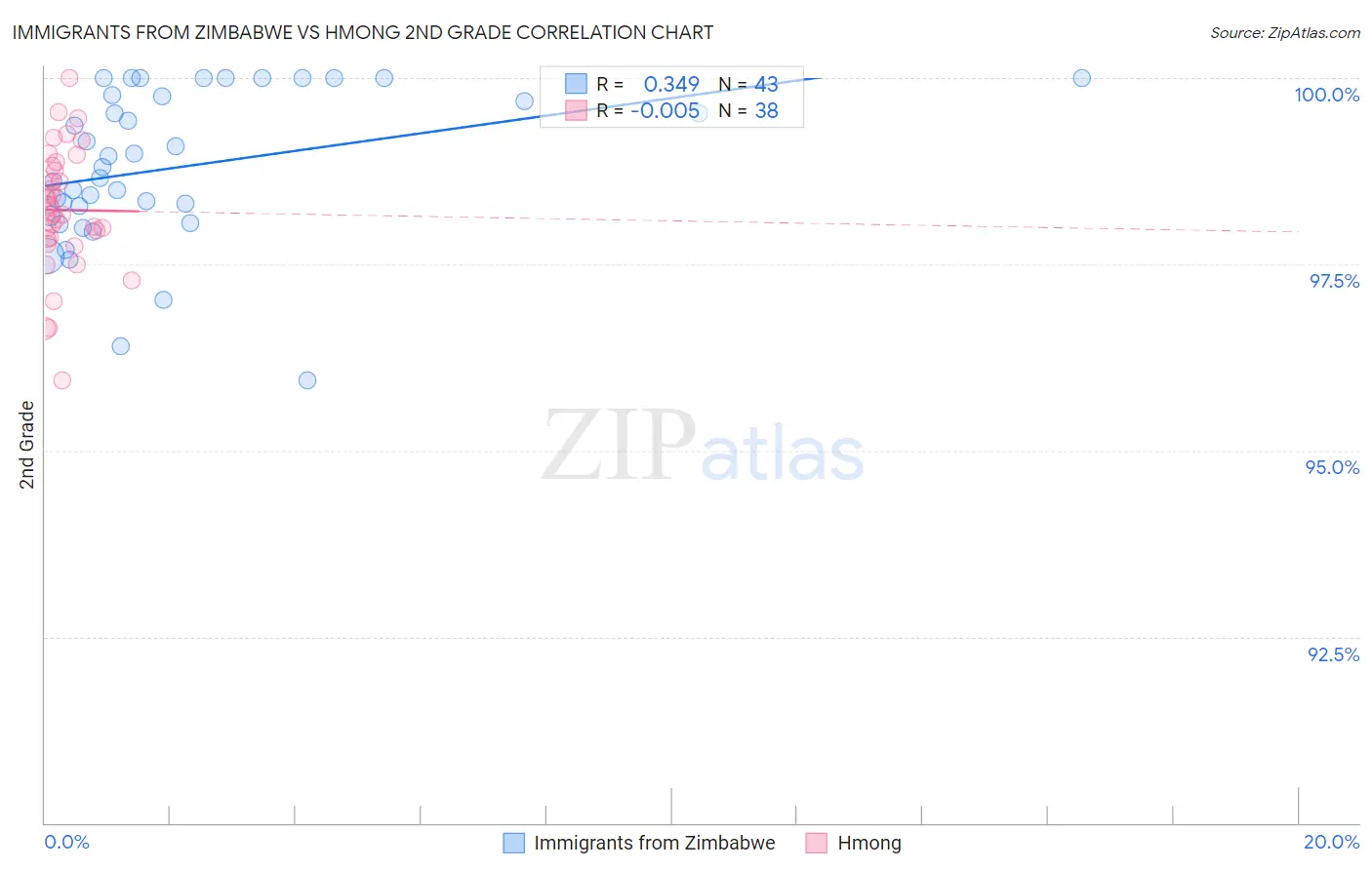 Immigrants from Zimbabwe vs Hmong 2nd Grade Correlation Chart