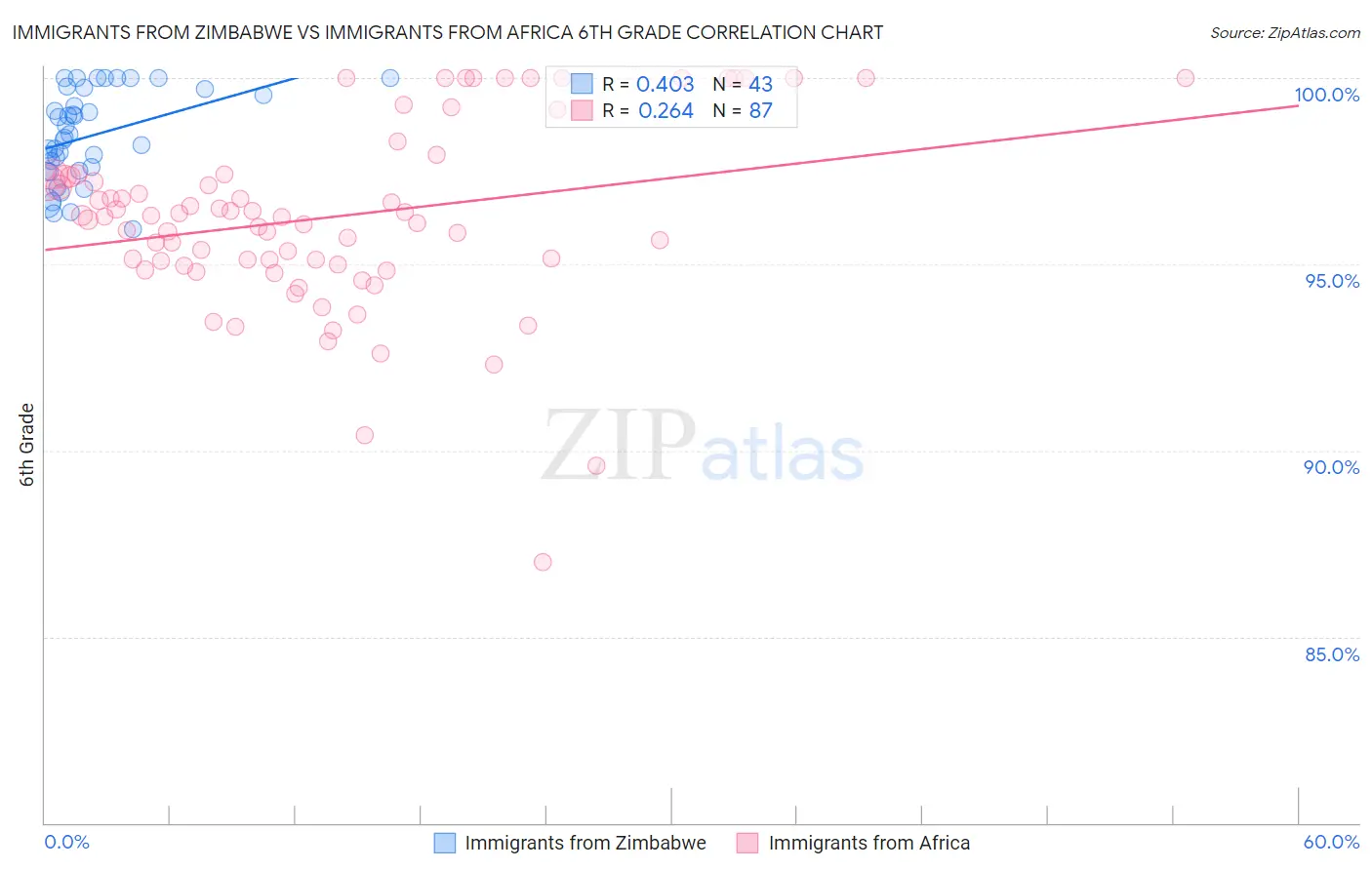 Immigrants from Zimbabwe vs Immigrants from Africa 6th Grade Correlation Chart