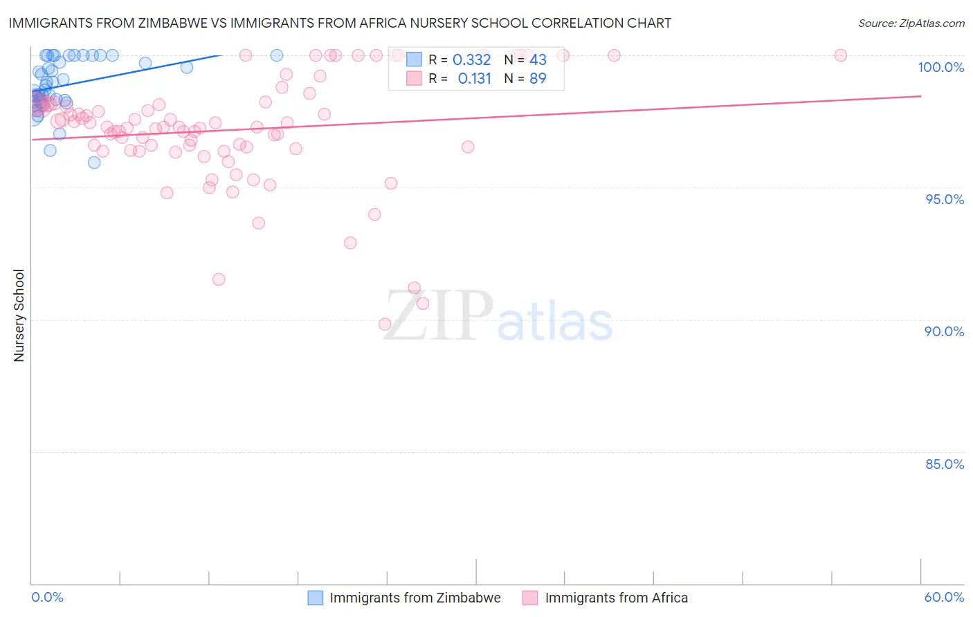 Immigrants from Zimbabwe vs Immigrants from Africa Nursery School Correlation Chart