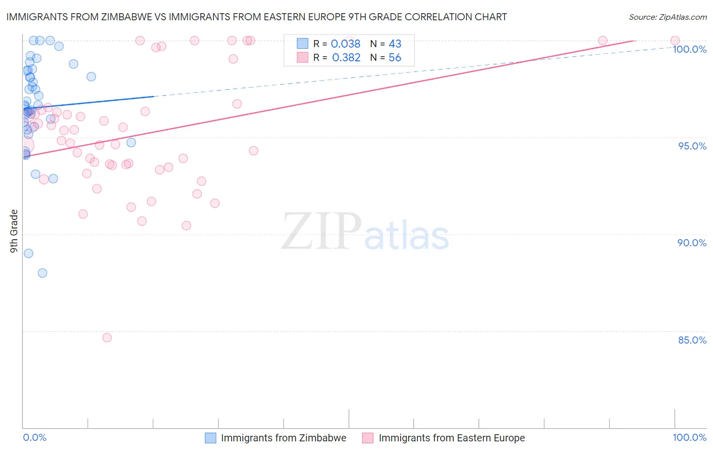 Immigrants from Zimbabwe vs Immigrants from Eastern Europe 9th Grade Correlation Chart