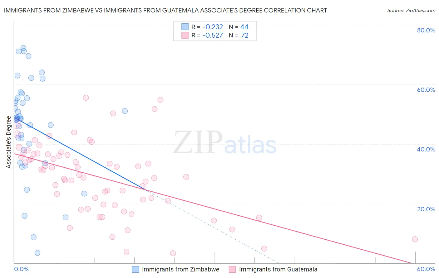 Immigrants from Zimbabwe vs Immigrants from Guatemala Associate's Degree Correlation Chart