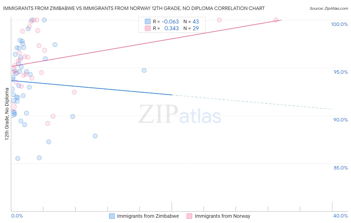 Immigrants from Zimbabwe vs Immigrants from Norway 12th Grade, No Diploma Correlation Chart