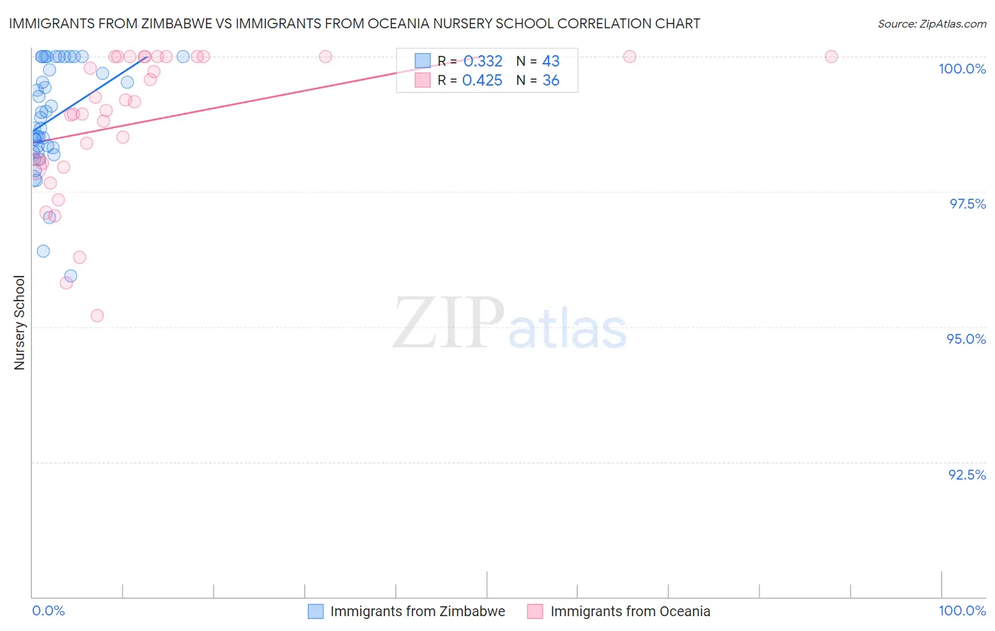 Immigrants from Zimbabwe vs Immigrants from Oceania Nursery School Correlation Chart