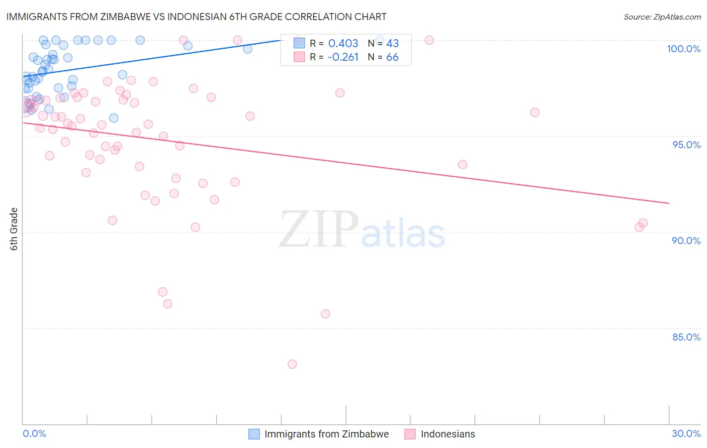 Immigrants from Zimbabwe vs Indonesian 6th Grade Correlation Chart