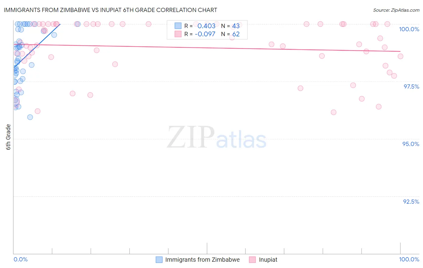 Immigrants from Zimbabwe vs Inupiat 6th Grade Correlation Chart