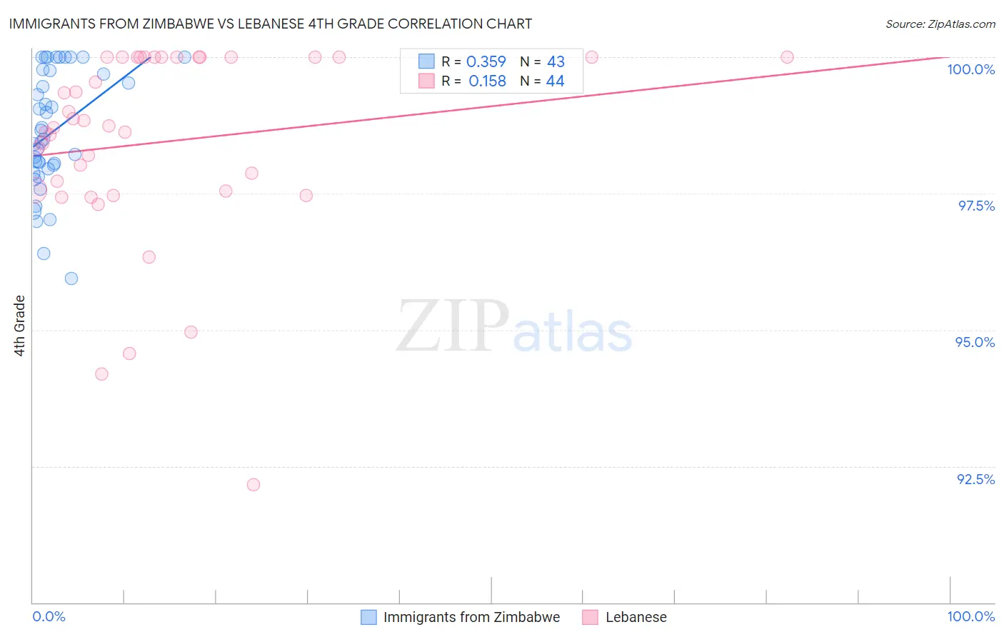 Immigrants from Zimbabwe vs Lebanese 4th Grade Correlation Chart