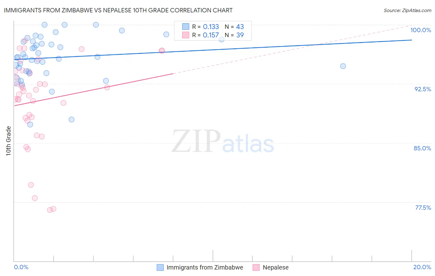 Immigrants from Zimbabwe vs Nepalese 10th Grade Correlation Chart
