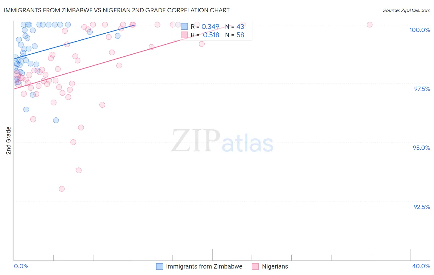 Immigrants from Zimbabwe vs Nigerian 2nd Grade Correlation Chart