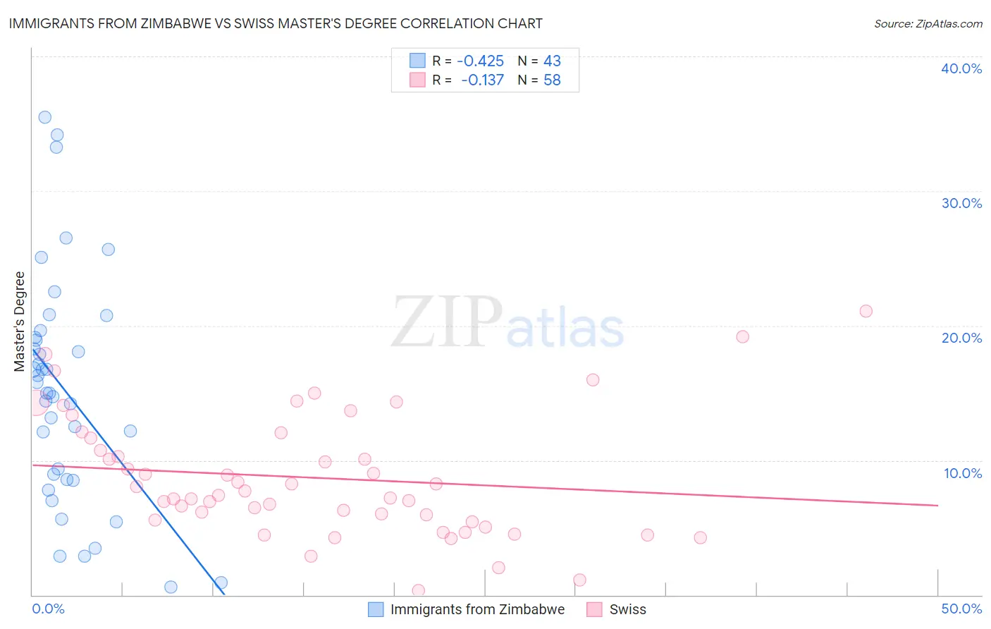 Immigrants from Zimbabwe vs Swiss Master's Degree Correlation Chart