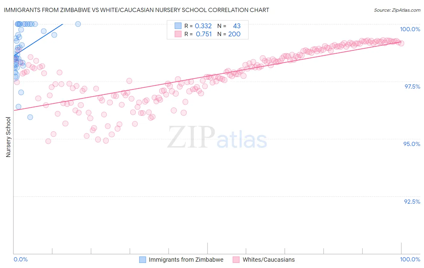 Immigrants from Zimbabwe vs White/Caucasian Nursery School Correlation Chart