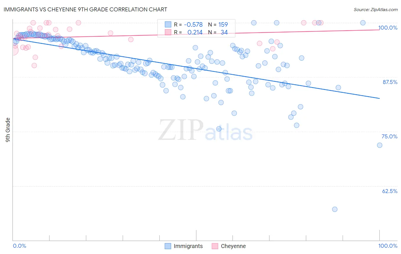 Immigrants vs Cheyenne 9th Grade Correlation Chart