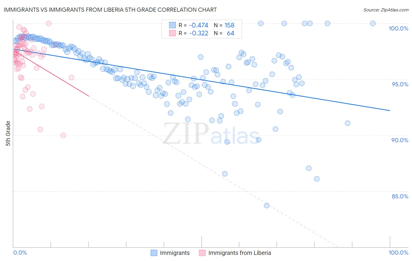 Immigrants vs Immigrants from Liberia 5th Grade Correlation Chart