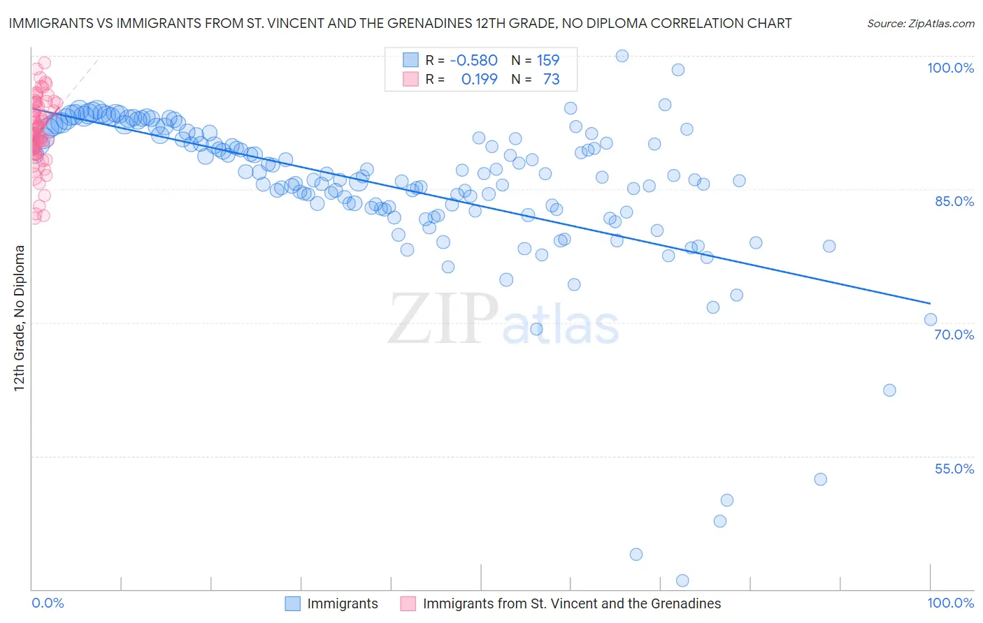 Immigrants vs Immigrants from St. Vincent and the Grenadines 12th Grade, No Diploma Correlation Chart