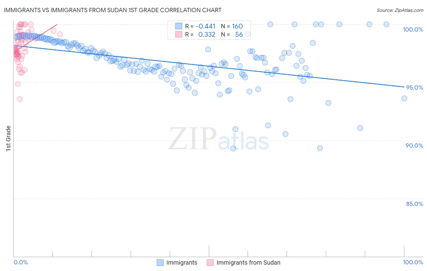 Immigrants vs Immigrants from Sudan 1st Grade Correlation Chart
