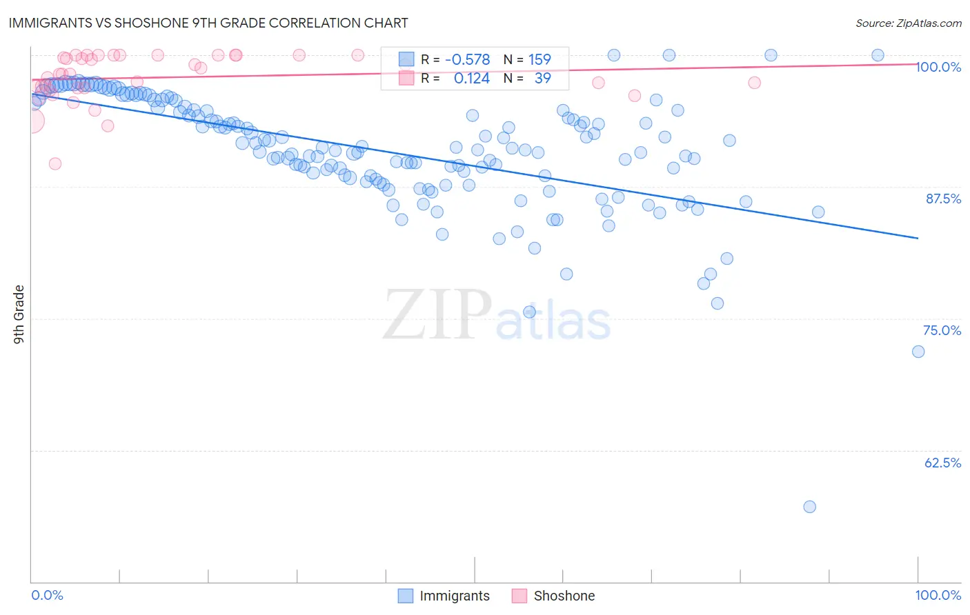 Immigrants vs Shoshone 9th Grade Correlation Chart