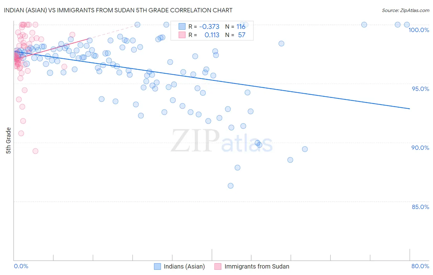 Indian (Asian) vs Immigrants from Sudan 5th Grade Correlation Chart