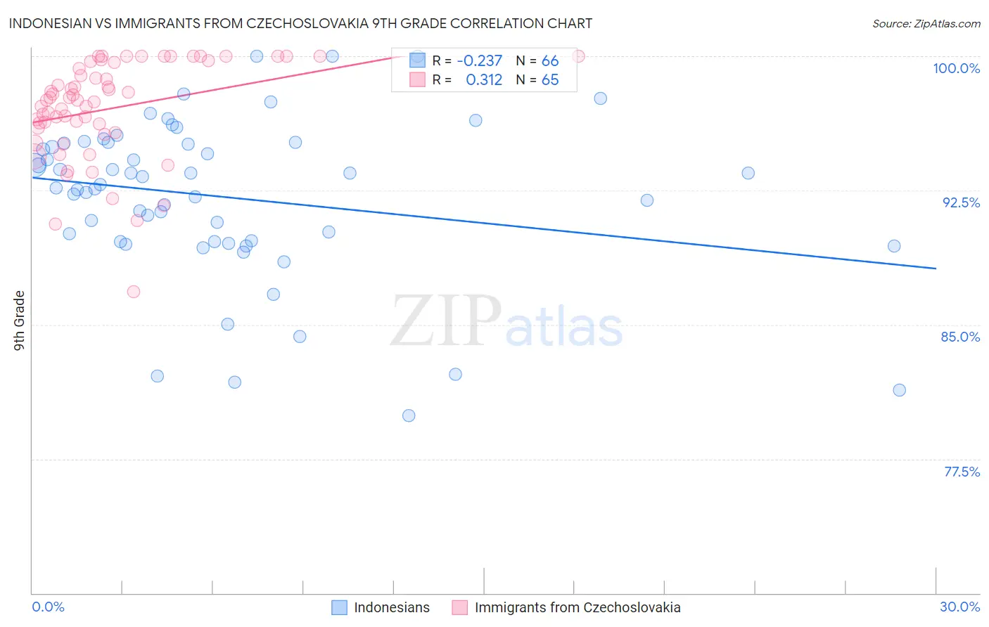 Indonesian vs Immigrants from Czechoslovakia 9th Grade Correlation Chart