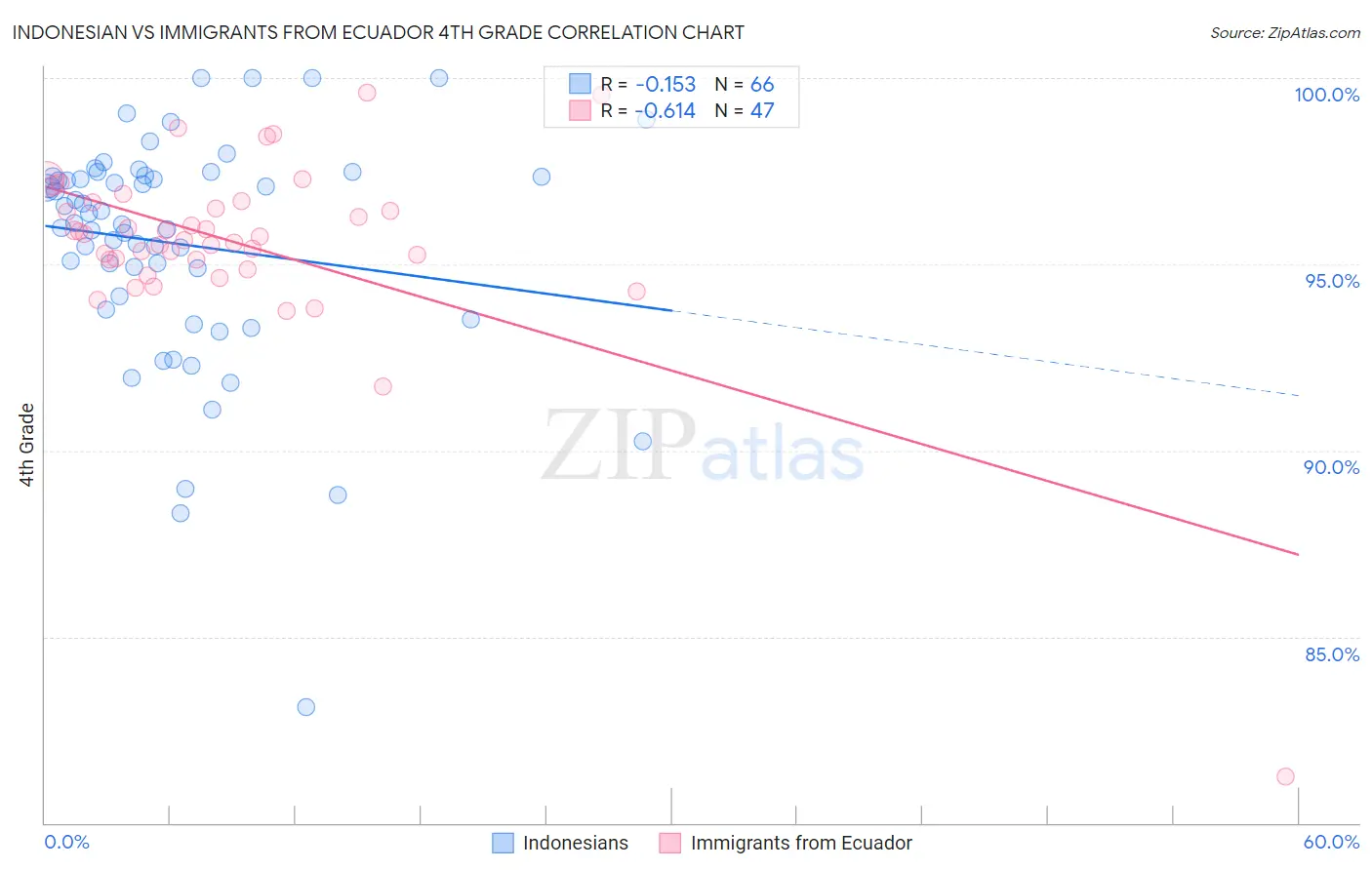 Indonesian vs Immigrants from Ecuador 4th Grade Correlation Chart