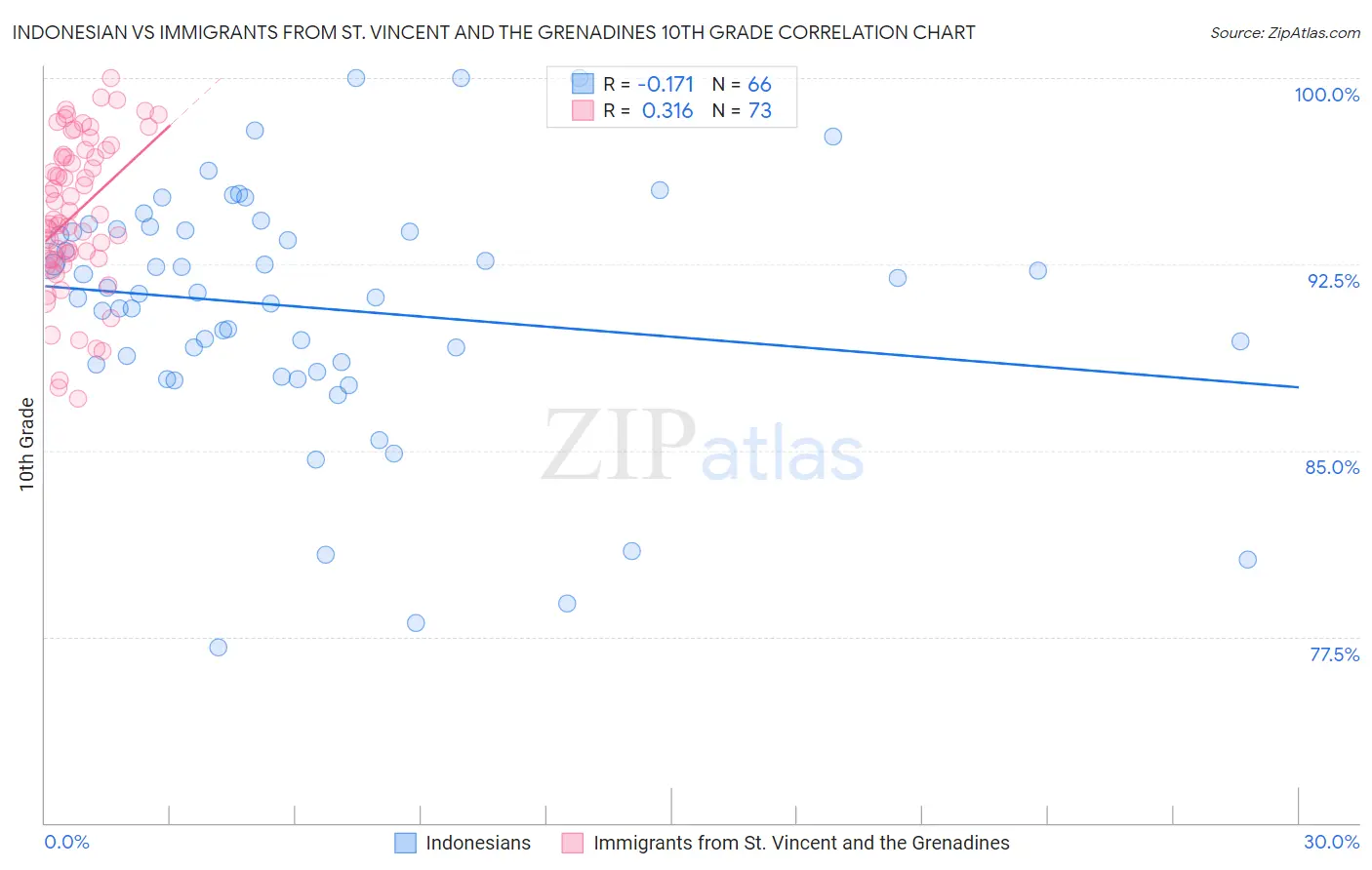 Indonesian vs Immigrants from St. Vincent and the Grenadines 10th Grade Correlation Chart
