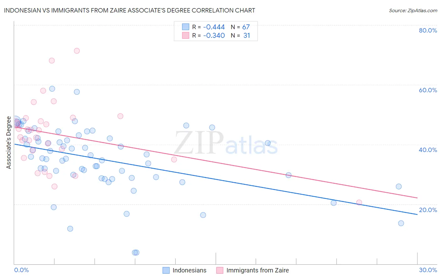 Indonesian vs Immigrants from Zaire Associate's Degree Correlation Chart