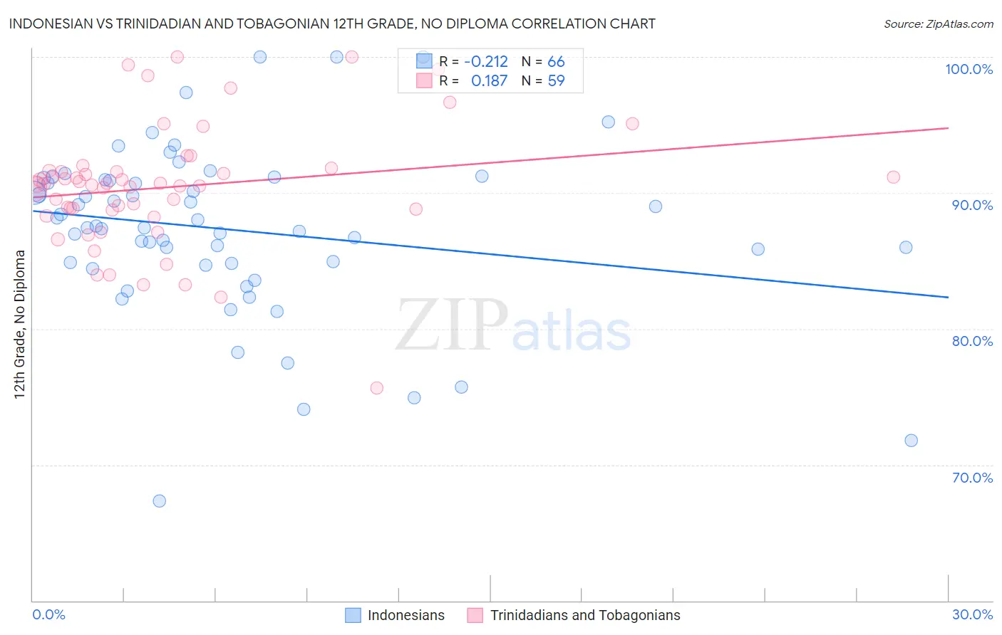 Indonesian vs Trinidadian and Tobagonian 12th Grade, No Diploma Correlation Chart
