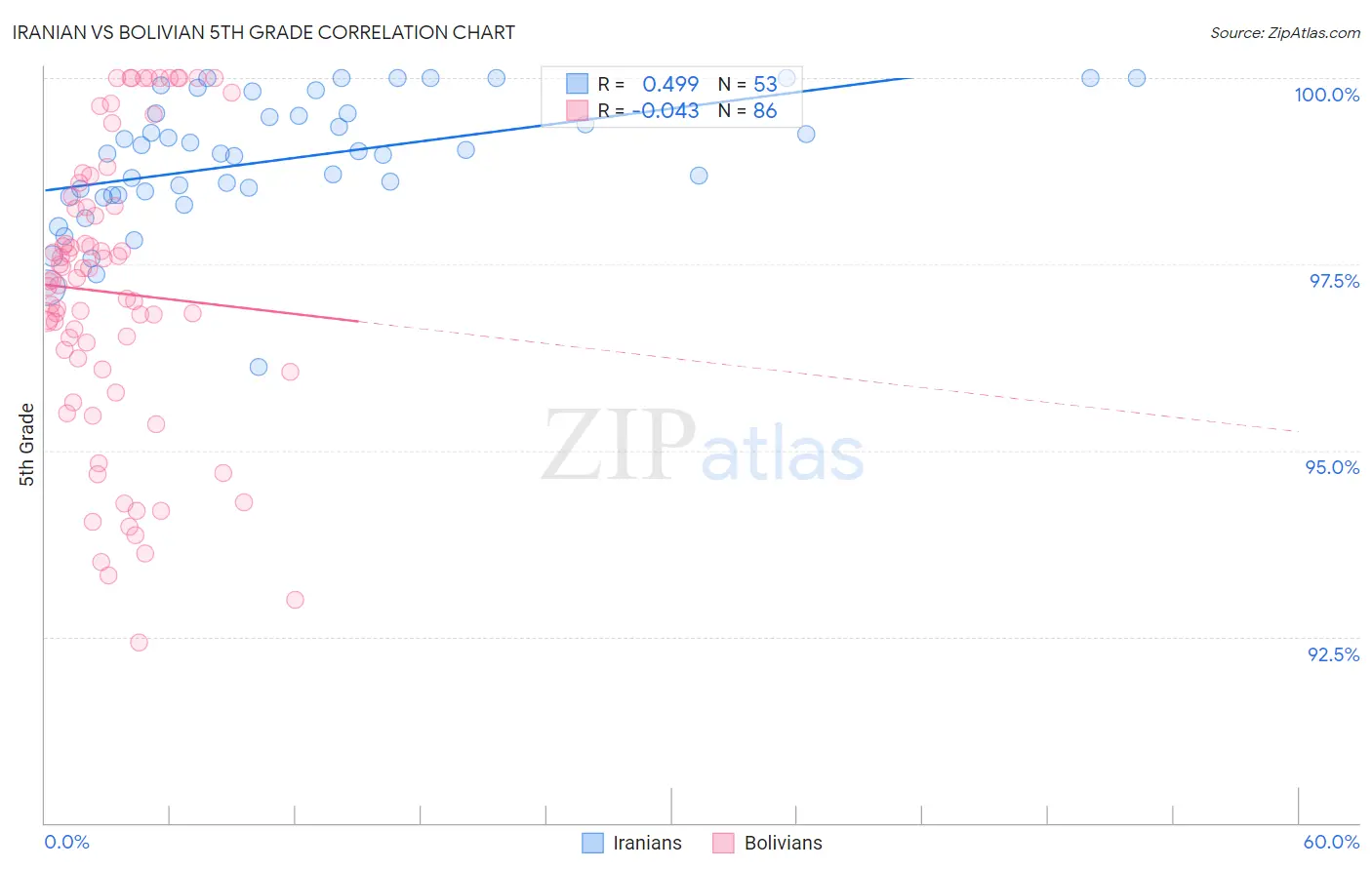 In terms of 5th grade, the demographic groups most similar to Iranians are Chickasaw (97.9%, a difference of 0.0%), Kiowa (97.9%, a difference of 0.010%), Macedonian (97.9%, a difference of 0.010%), Cajun (97.9%, a difference of 0.020%), and Cherokee (97.8%, a difference of 0.020%).