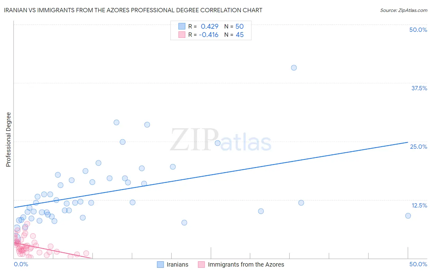 Iranian vs Immigrants from the Azores Professional Degree Correlation Chart