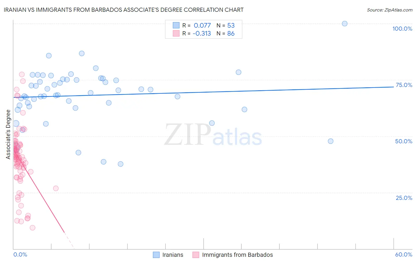 Iranian vs Immigrants from Barbados Associate's Degree Correlation Chart