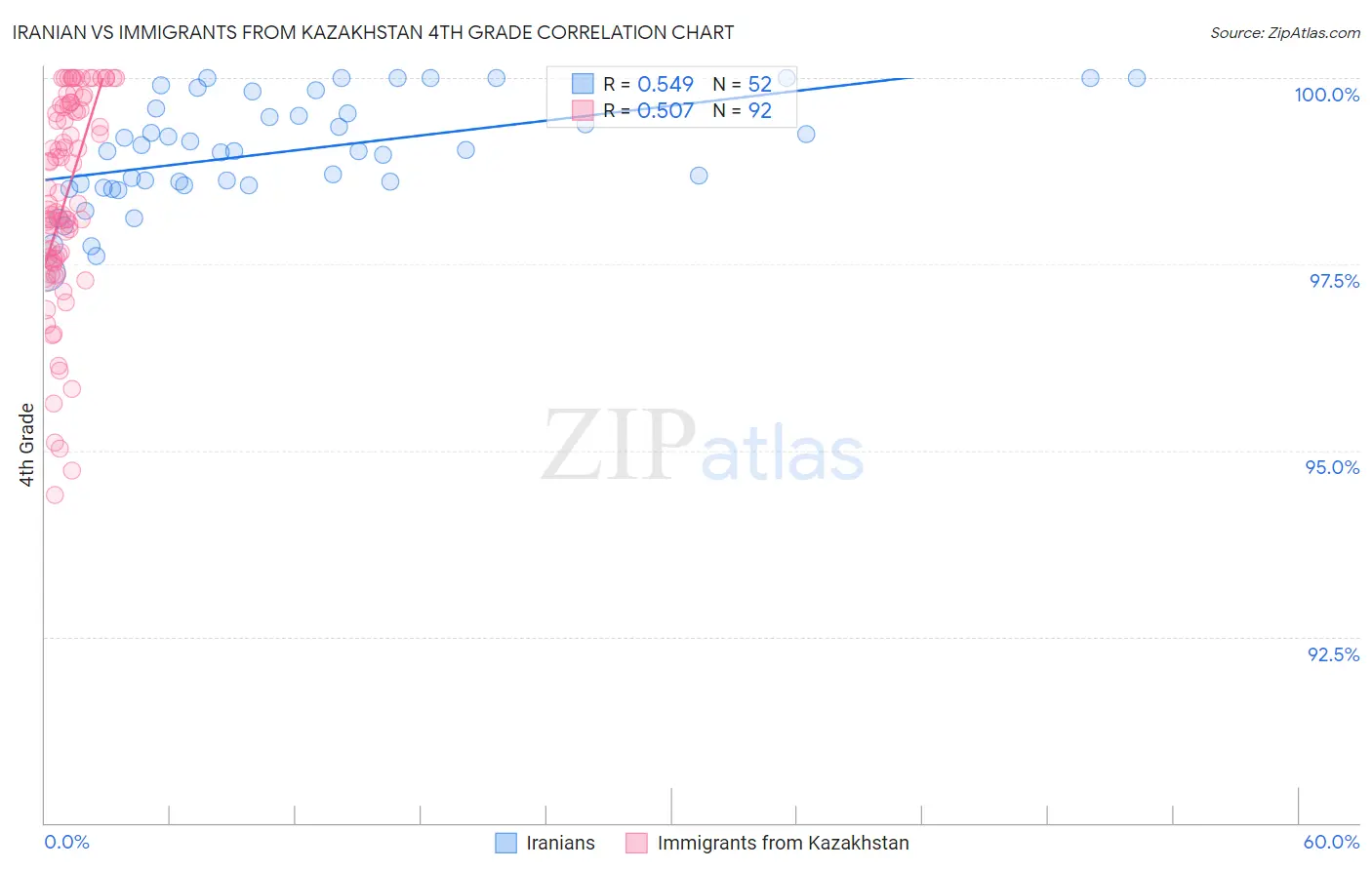Iranian vs Immigrants from Kazakhstan 4th Grade Correlation Chart