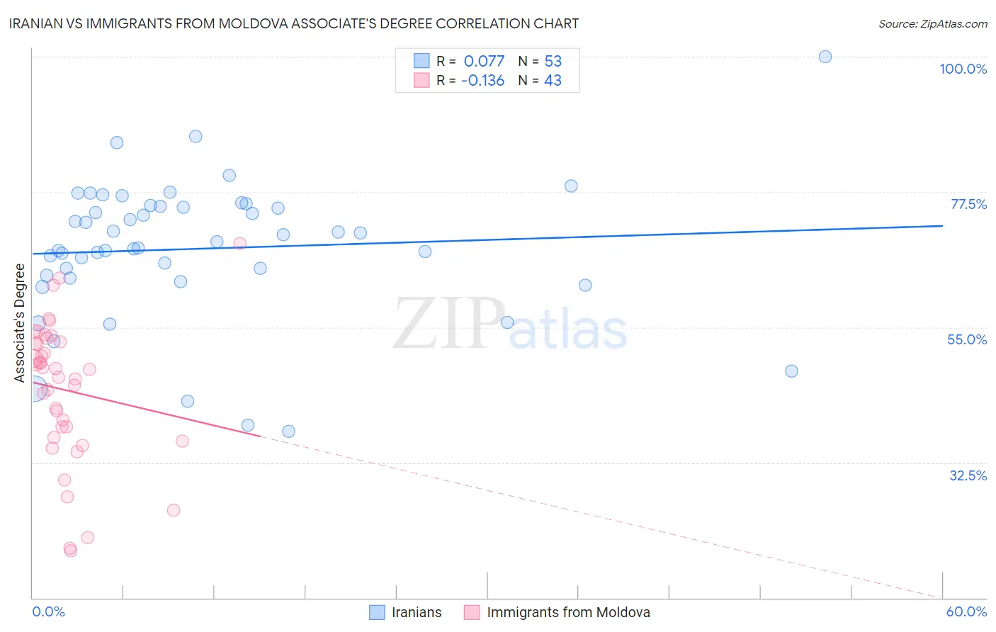 Iranian vs Immigrants from Moldova Associate's Degree Correlation Chart