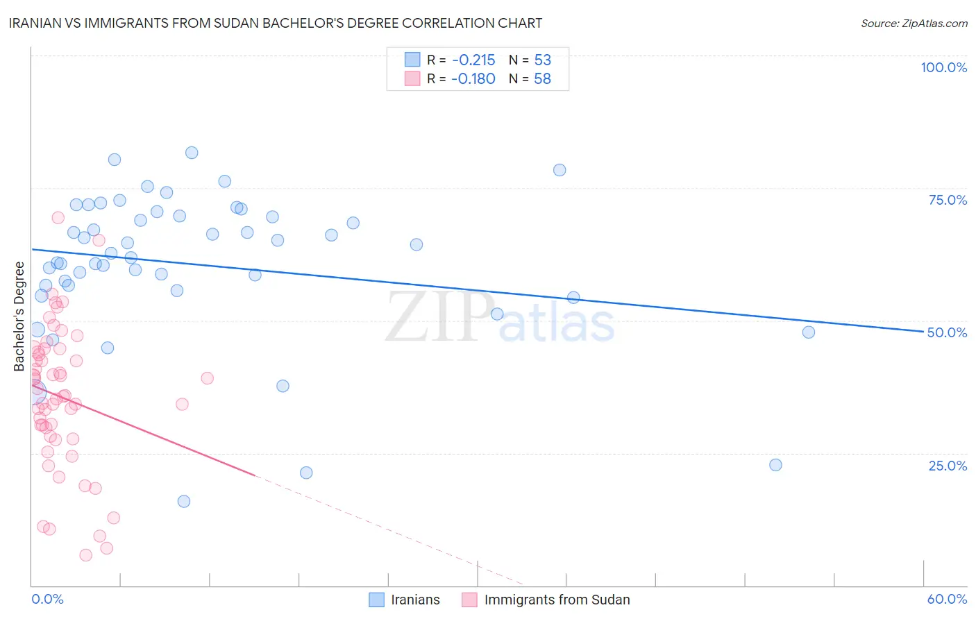 Iranian vs Immigrants from Sudan Bachelor's Degree Correlation Chart