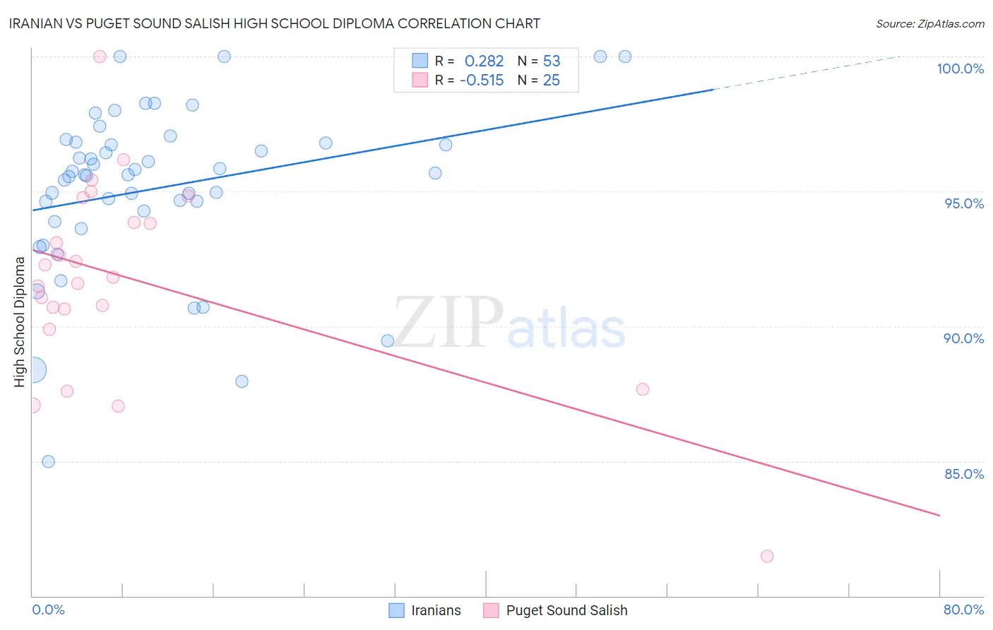 Iranian vs Puget Sound Salish High School Diploma Correlation Chart