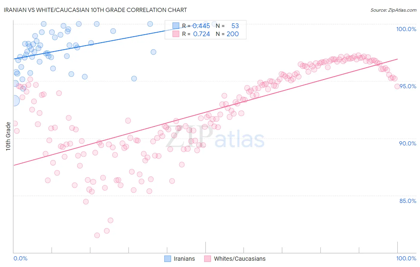Iranian vs White/Caucasian 10th Grade Correlation Chart