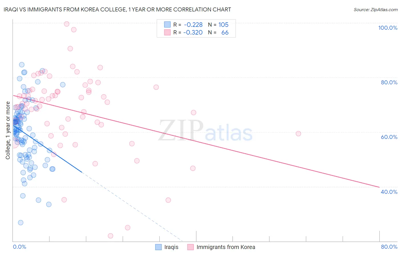Iraqi vs Immigrants from Korea College, 1 year or more Correlation Chart