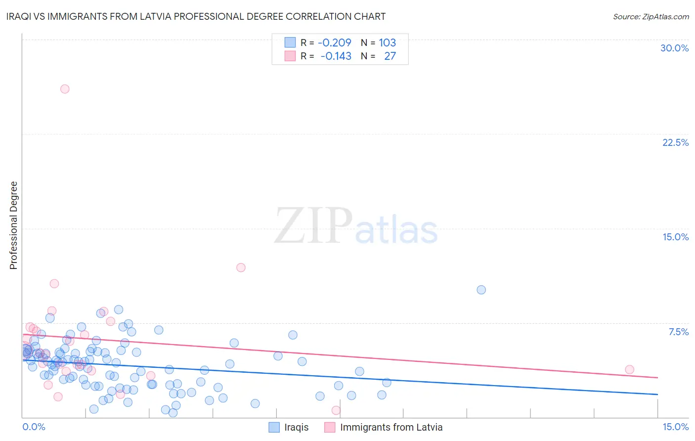Iraqi vs Immigrants from Latvia Professional Degree Correlation Chart