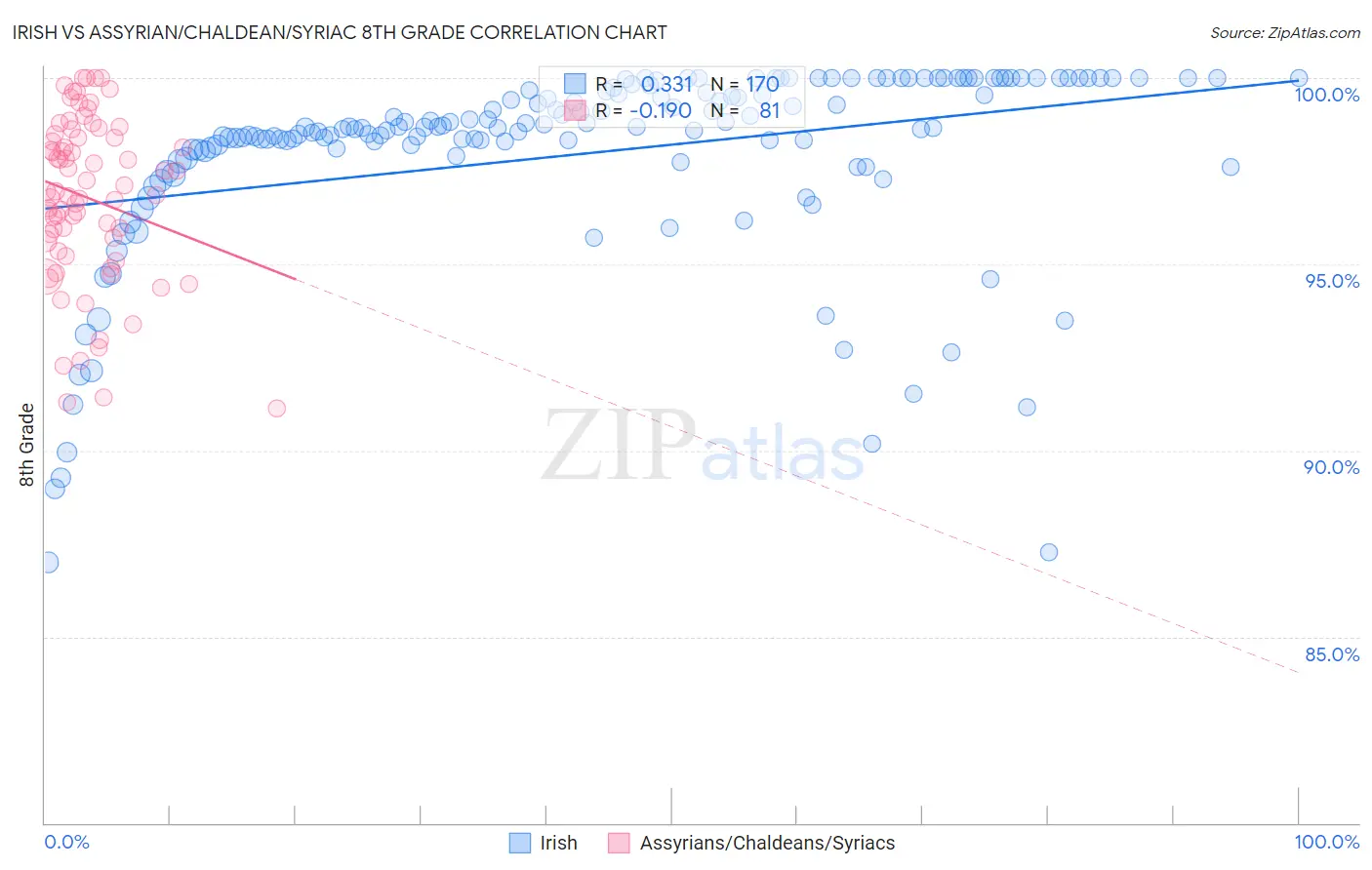 Irish vs Assyrian/Chaldean/Syriac 8th Grade Correlation Chart