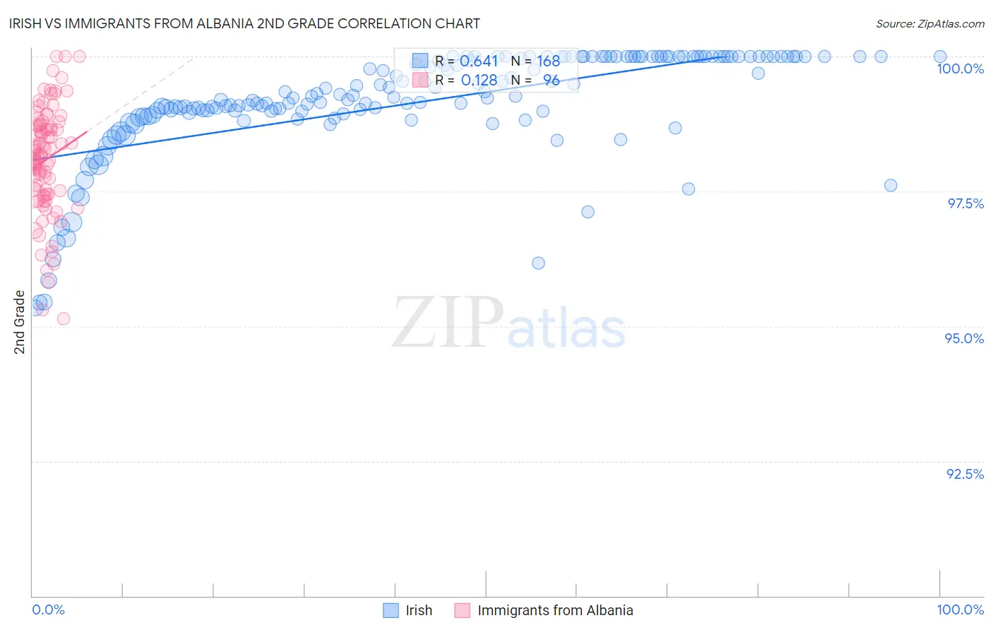 Irish vs Immigrants from Albania 2nd Grade Correlation Chart