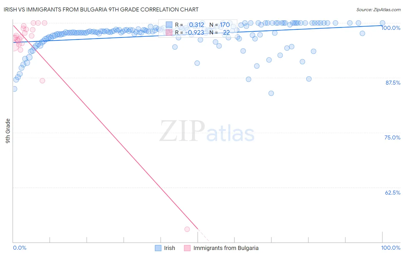 Irish vs Immigrants from Bulgaria 9th Grade Correlation Chart