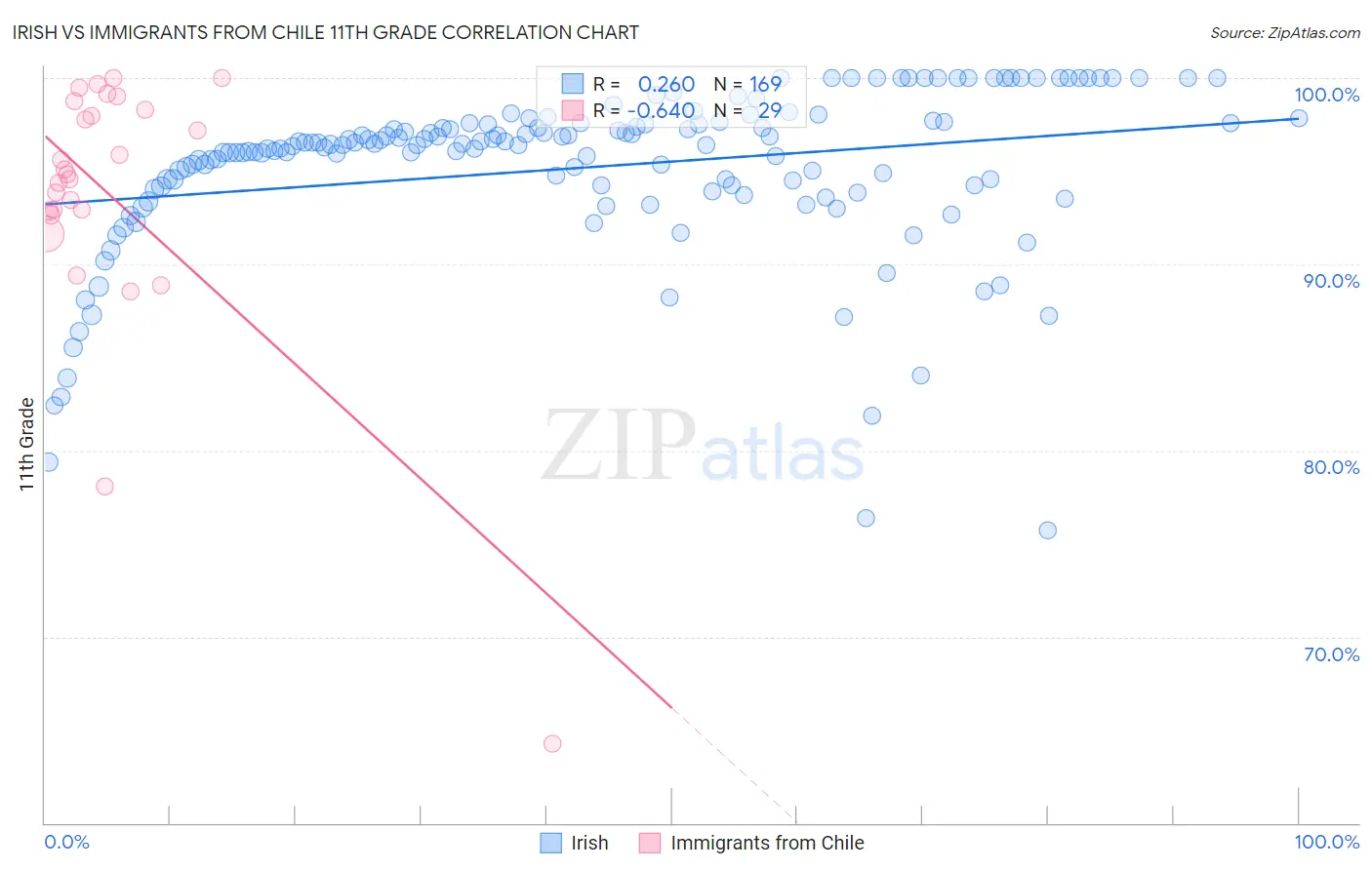 Irish vs Immigrants from Chile 11th Grade Correlation Chart
