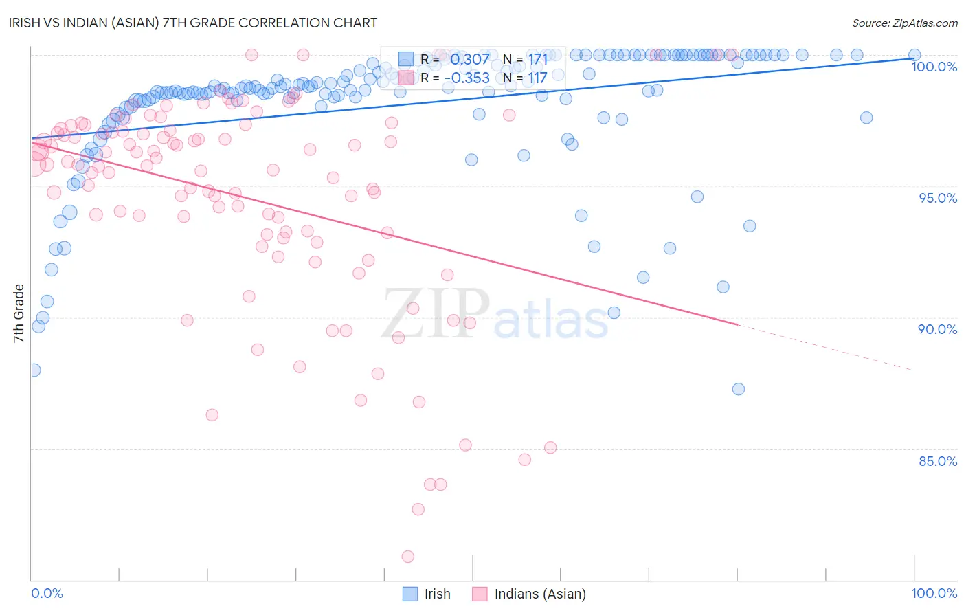 Irish vs Indian (Asian) 7th Grade
