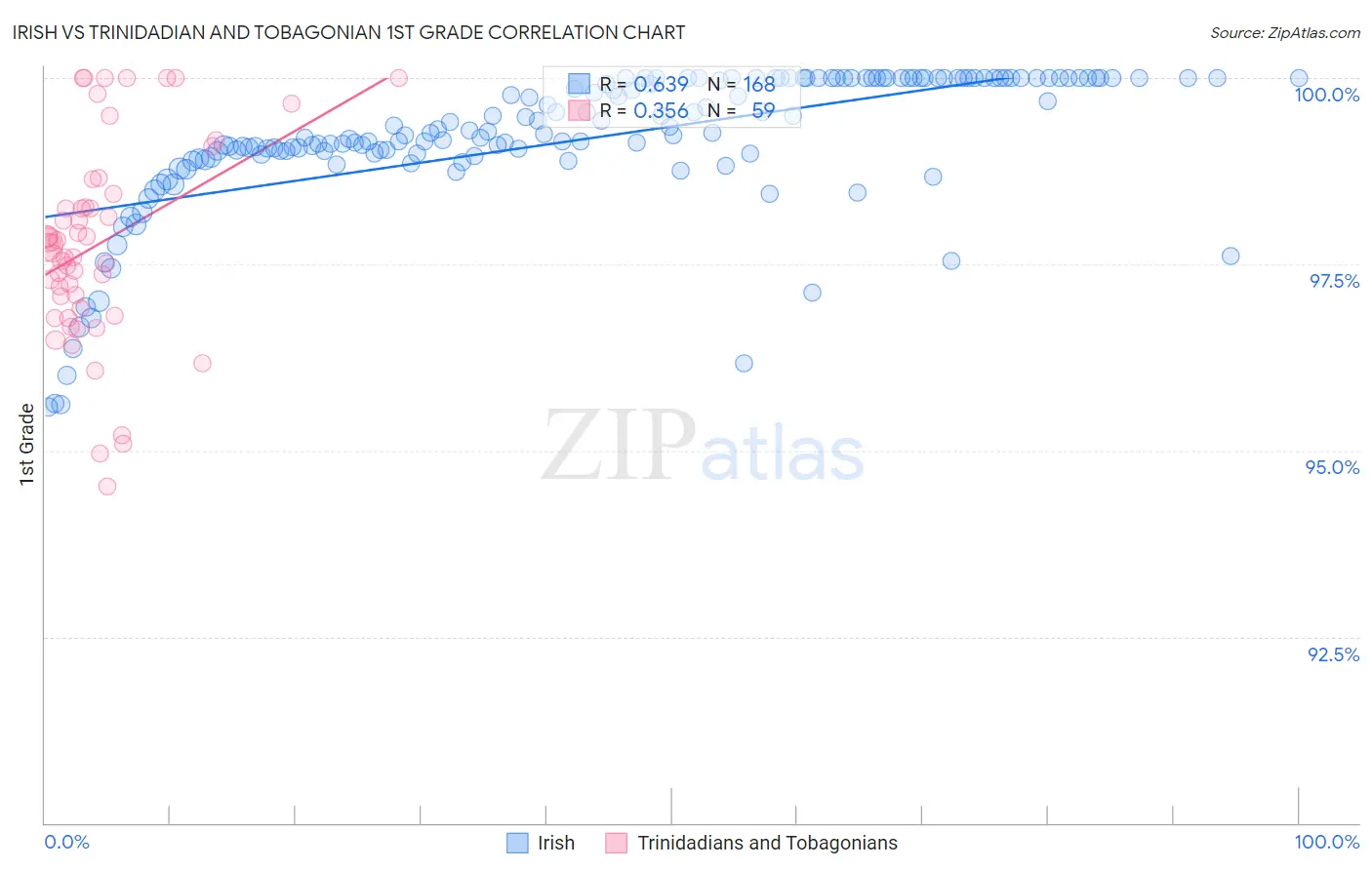 Irish vs Trinidadian and Tobagonian 1st Grade Correlation Chart
