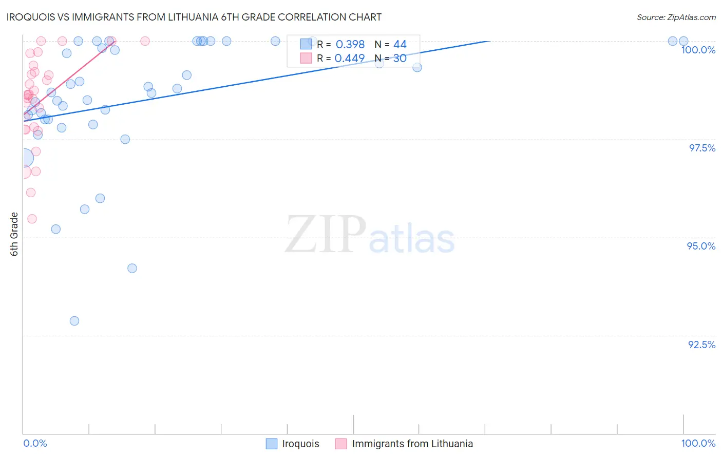 Iroquois vs Immigrants from Lithuania 6th Grade Correlation Chart