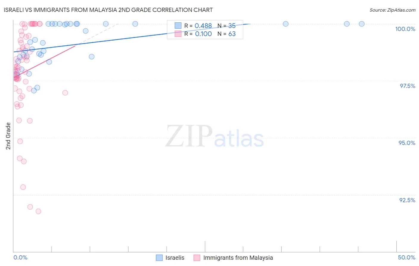 Israeli vs Immigrants from Malaysia 2nd Grade Correlation Chart