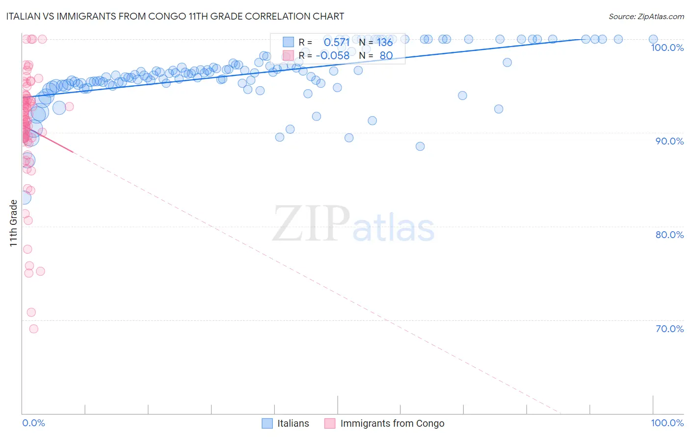 Italian vs Immigrants from Congo 11th Grade Correlation Chart