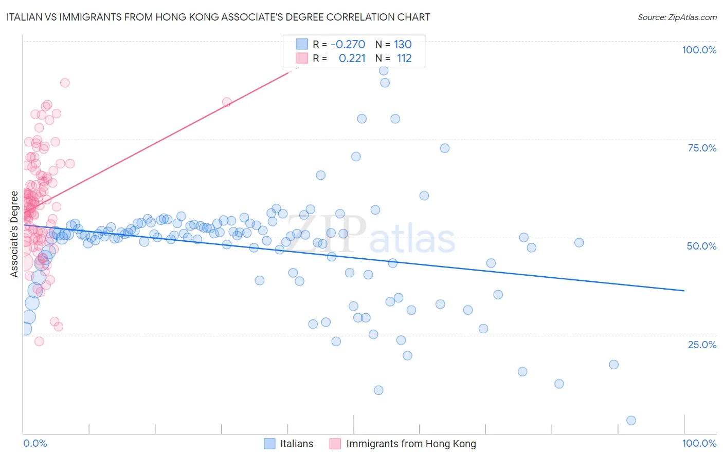 Italian vs Immigrants from Hong Kong Associate's Degree Correlation Chart