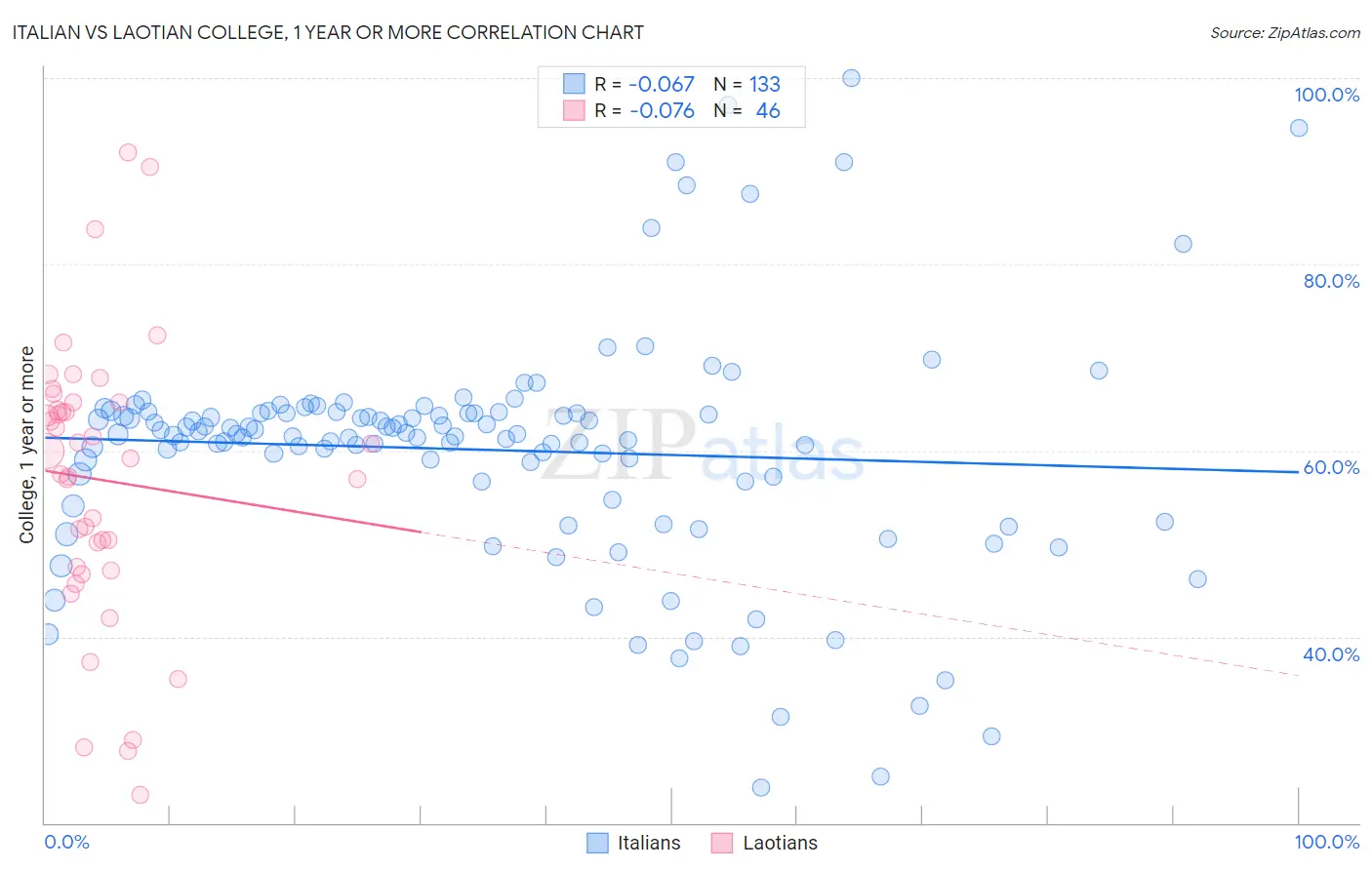 Italian vs Laotian College, 1 year or more Correlation Chart